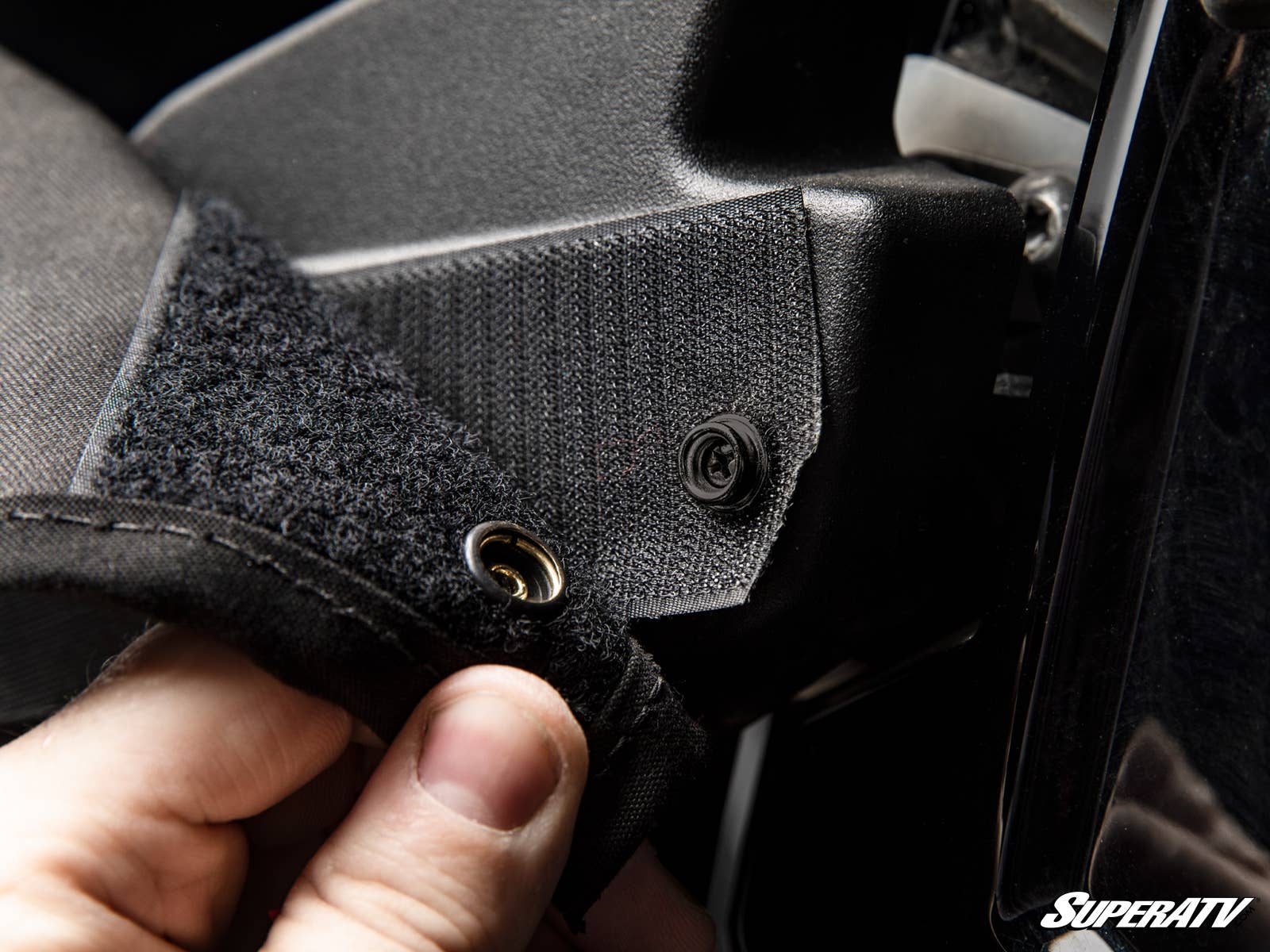 Equipping your machine to suit your off-roading lifestyle can be time consuming and costly. You’re going to want something durable, and that’s why we’ve invested our Pel-Tek Technology into these soft cab doors. We make these doors from our PVC-backed polyester material that enhances resistance to water, abrasions, punctures, and mildew. These doors are also CNC cut for a secure fit so they won’t sag or stretch. Plus, we make installation a breeze with our mounted-frame snaps and heavy-duty Velcro.