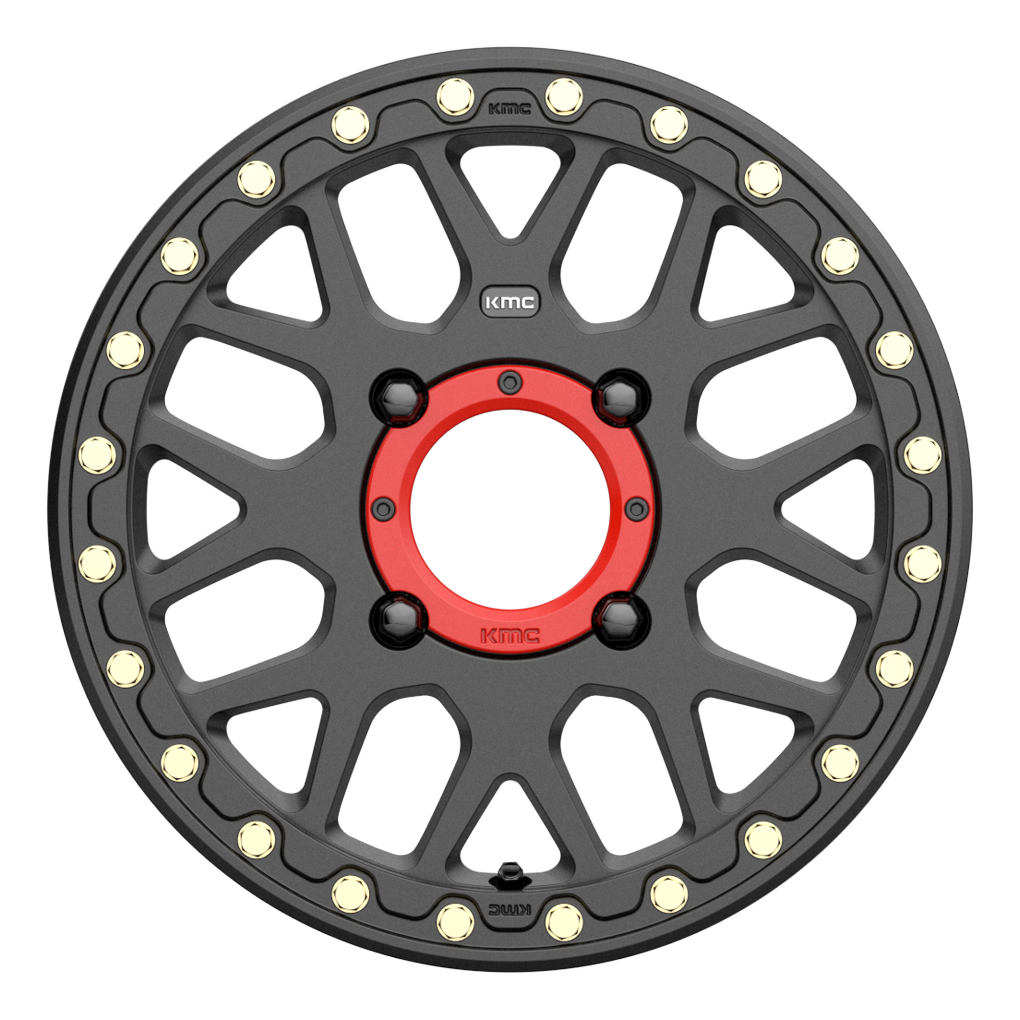 The KMC Grenade beadlock wheel features a split eight-spoke mesh design that is specifically engineered to provide the maximum amount of structural integrity while offering ample negative space to vent heat and debris under high speeds. This wheel is incredibly strong, plus its seamless billet beadlock ring ensures that your tires stay put and your bolts never get sheared or destroyed in transit.