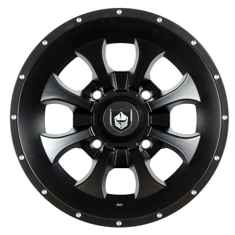 P1410KNBLPro Armor Knight UTV Wheel in matte black. This wheel in 15x8 size will work with most machines including the Polaris RZR. Black color is easily washable and looks great when paired with one of our Pro Armor tires. 156 bolt pattern for Polaris (General, RZR XP, RZR XP Turbo, RZR Turbo S, Ace, Ranger, Sportsman, Scrambler). Yamaha (YXZ 19+). Kawasaki Mule Pro FXT). Arctic Cat (Wildcat XX).