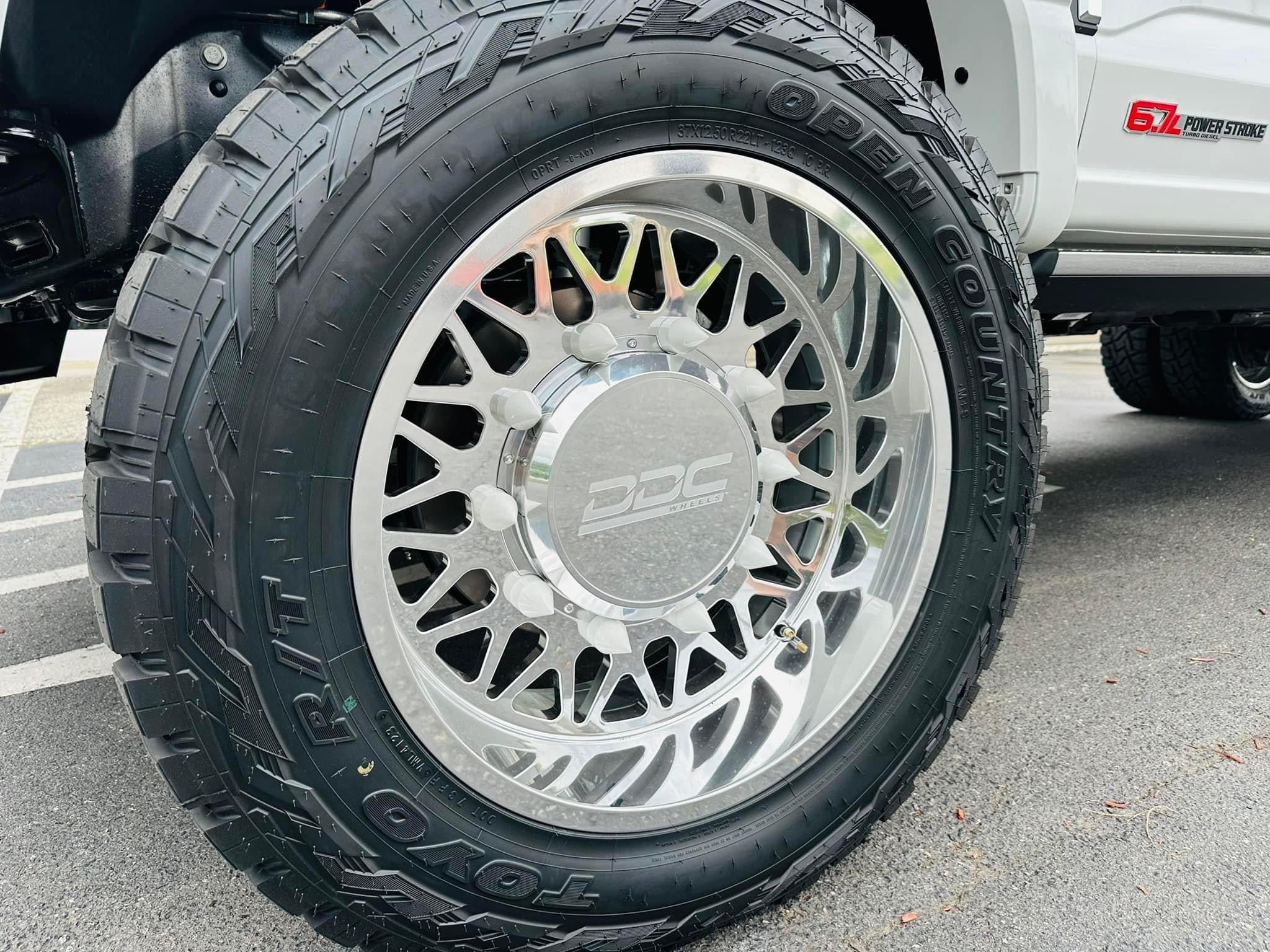 DDC Wheels are designed to bring superior form, fit and function to your dually pickup. Our forged 8 & 10 lug dually wheels incorporate an attractive 10 lug design that comes standard with our bullet style lug covers, or these can be upgraded to spike lug covers.