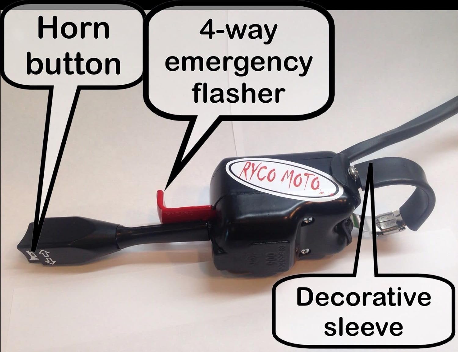 Kit utilizes the stock rear taillight assemblies as signals for a clean factory appearance. Steering column mounted combination turn signal and horn switch. Front LED turn signal lights - bright amber when illuminated.