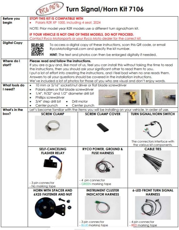 Ryco Motorsports Street Legal Kits for 2024-25 Polaris RZR XP Models comes with 6 LED Turn Signal Lights, Horn and a Lighted License Plate Bracket. All components and workmanship are highest quality and have easy installation Instructions. You get the complete kit with all the problems worked out for you.