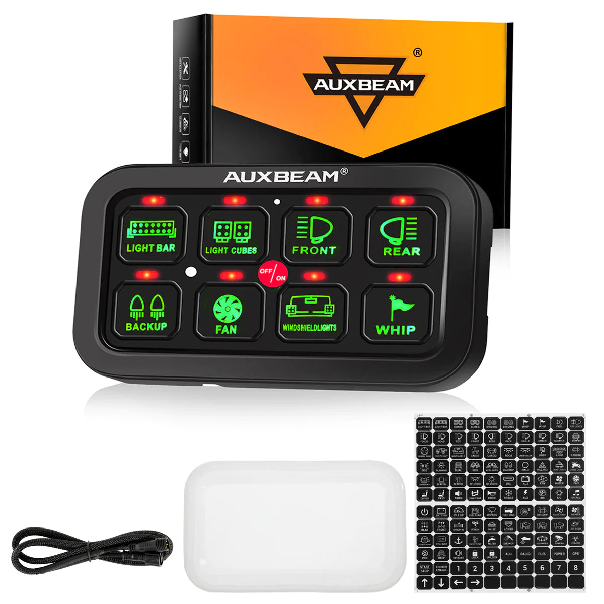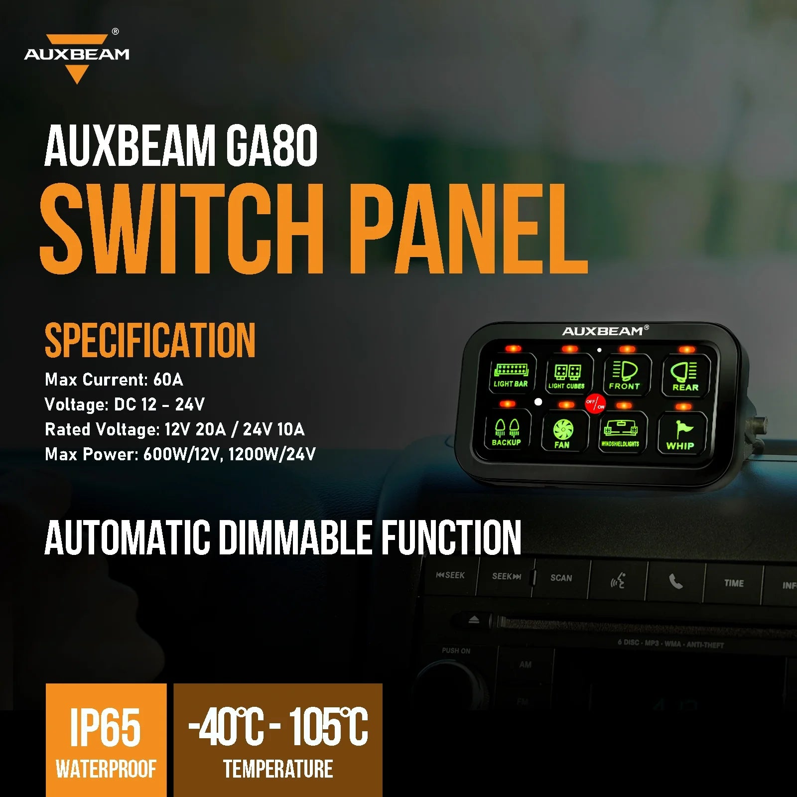 Auxbeam - GA80 8 GANG LED SWITCH PANEL KIT AUTOMATIC DIMMABLE UNIVERSAL(ONE-SIDED OUTLET) GREEN