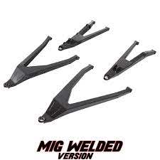 Utilizing Factory Geometry but adding the strength of Chromoly we have Engineered one of the strongest A Arms on the market for the Can AM X3. These Arms Consist of a 4130 Chromoly Plate CNC bent and Mig Welded for Strength. Internal Plating and Gusseting is used to make this Arm Kit Stronger than factory. 4130 Chromoly Thick welded bushing sleeves and Weld Cups make these Great for people that want to Race or Play hard and not have to worry about being stranded in the desert.