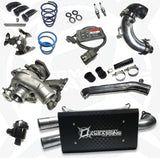 - Are you looking to hurt some feelings? Then this is the kit for you! This Stage 4 kit is the most complete turbo upgrade kit you'll find for your RZR XP Turbo and backed with the best tuning out there to make your RZR rip all day long. This kit combines absolutely everything you need to take your RZR to above and beyond the competition. It includes our big water cooled turbo, custom tuning, S3 complete clutching, our billet diverter/blow off valve, secondary clutch snap ring delete kit, pre-gapped spark plugs, performance slip-on exhaust, high flow intake tube, and high flow charge tube. Our big water cooled turbo creates up to 255-260 crank horsepower! This complete turbo modification is just what you need for 25-27 PSI of boost! Boost temps will skyrocket quickly on the factory turbo, where as with our aftermarket turbo, they will be much lower... even at boost temps over 25 pounds! Now that we are moving air on the intake side, we need to get that air out. Our turbo includes a high larger diameter exducer and 10 blade exhaust turbine to create less back pressure and heat buildup in the motor. Heat buildup on the exhaust side is another HUGE issue with the factory turbo. What's essentially happening is you are running out of exhaust flow, and that makes more power very hard to produce. With this high flow turbine, we can increase boost and see a healthy increase in horsepower with our tuning on pump gas and race fuel. The factory wastegate is also a big problem as it's very weak, and as time goes on the spring only gets weaker. Building boost with a wimpy wastegate (like our competitors do) can produce varied results, hot temps, and turbo overheating. We install a high pressure actuator complete with a new bracket. This wastegate produces extremely consistent results, will hold a huge amount of boost, and is a key component in this turbo mod working so well. Each turbo is fully blueprinted and balanced from our turbocharger manufacturer. Our custom tuned Powervision ECU flash device will send the tunes directly to your ECU, allow you to change tunes within 3 minutes, and easily return to stock. It also has data logging capabilities, diagnostics, and is a great gauge allowing you to read boost, throttle position, RPM, and more. We then transfer the power to the ground MUCH better than the factory with our S3 complete clutch kit. Though we test mostly in the real world to get the best results, we did see a 7-10 RWHP increase from 20 MPH to 40 MPH on the wheel dyno with just the clutch kit. This kit also includes our high flow exhaust to get rid of the catalytic converter and restrictive stock muffler. This allows heat to escape much quicker, and allows us to tune more aggressively. Our exhaust features an EXCELLENT sound that is fully adjustable with our quiet core that blocks off one outlet. The diverter valve is an o-ringless tip design and is needed when increasing boost pressure to prevent factory valve failure. It also comes with a plug so you can have that classic blow off CHHHH sound when you want it. Our high flow intake and charge tube help to lower intake temps going into your motor which is HUGE when going with our Level 3 or higher tunes. For more detail on each product, see the individual product listings.