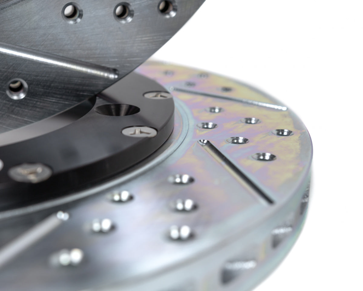 - 2 Piece Cast Iron Vented Rotor with 6061 T-6 Billet Aluminum Hat