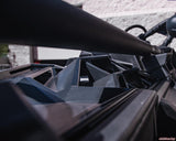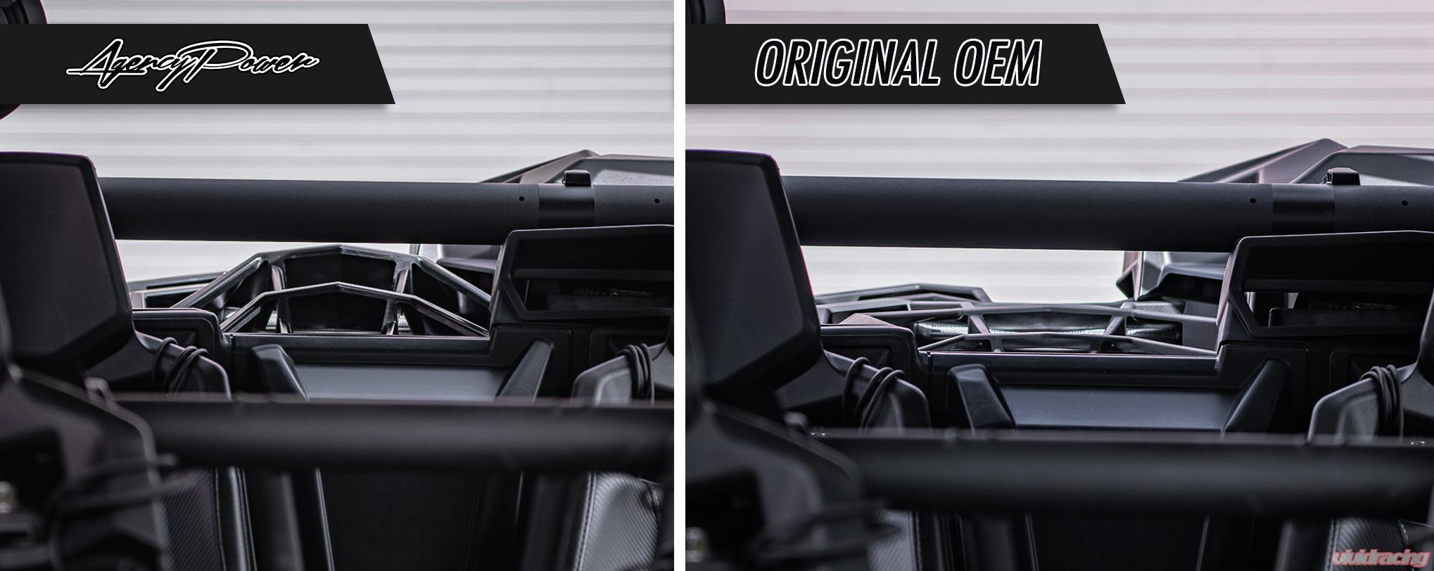Agency Power’s Intercooler Duct Cover for the Can-Am Maverick X3 is a product that all X3 owners will want to be equipped with! This simple design change can greatly benefit your UTV’s performance and efficiency. By design, intercoolers work by taking the air flow from the outside to cool the hot air inside the intercooler parts. Getting more air flow to the intercooler helps with this process. This is why you will see automotive and off-road aftermarket users trimming up bumpers or grills to improve air flow. In the Can-Am X3 intercooled models, the air is directed to the intercooler with a cover that features ducts/scoops right behind the rear seats. These inlets on this cover feed the top side of the intercooler the fresh air it needs. Using the same location and improving the size of scoops Agency Power has created an OEM replacement product that is stylish and a great way to increase air flow to the intercooler.