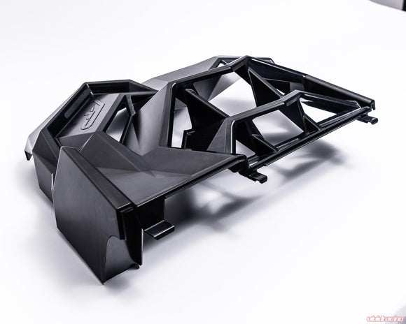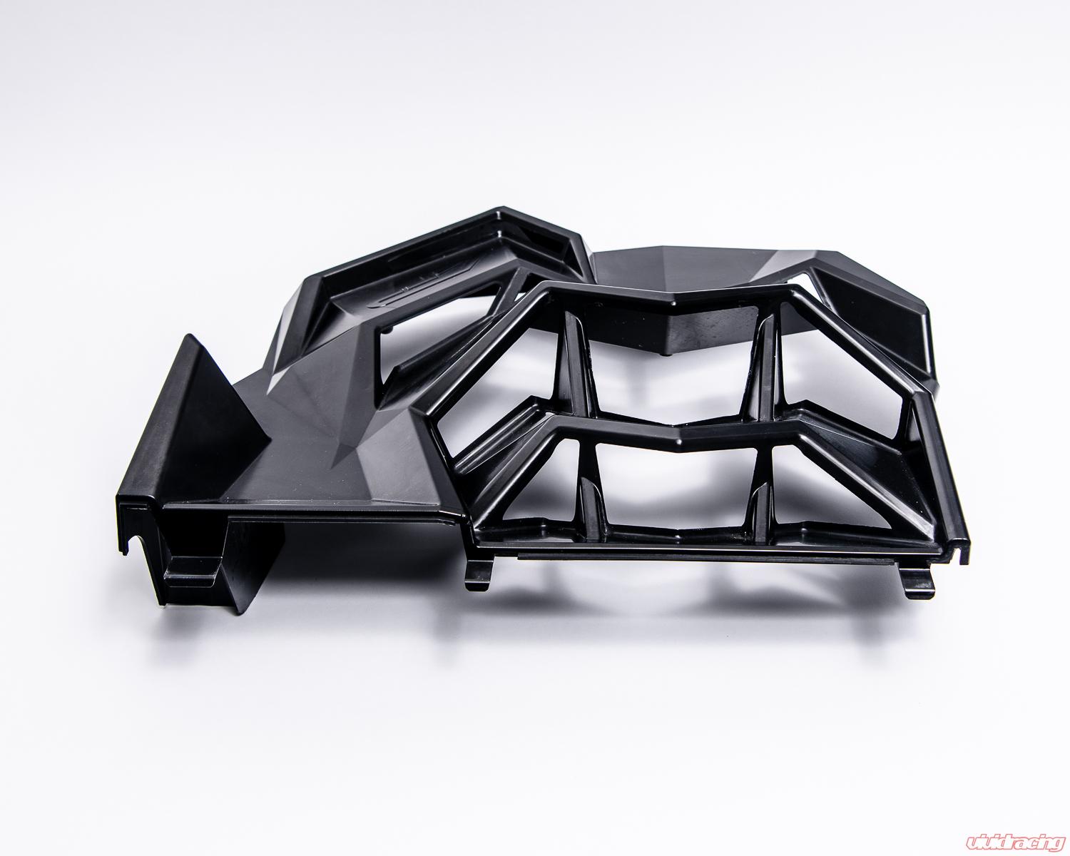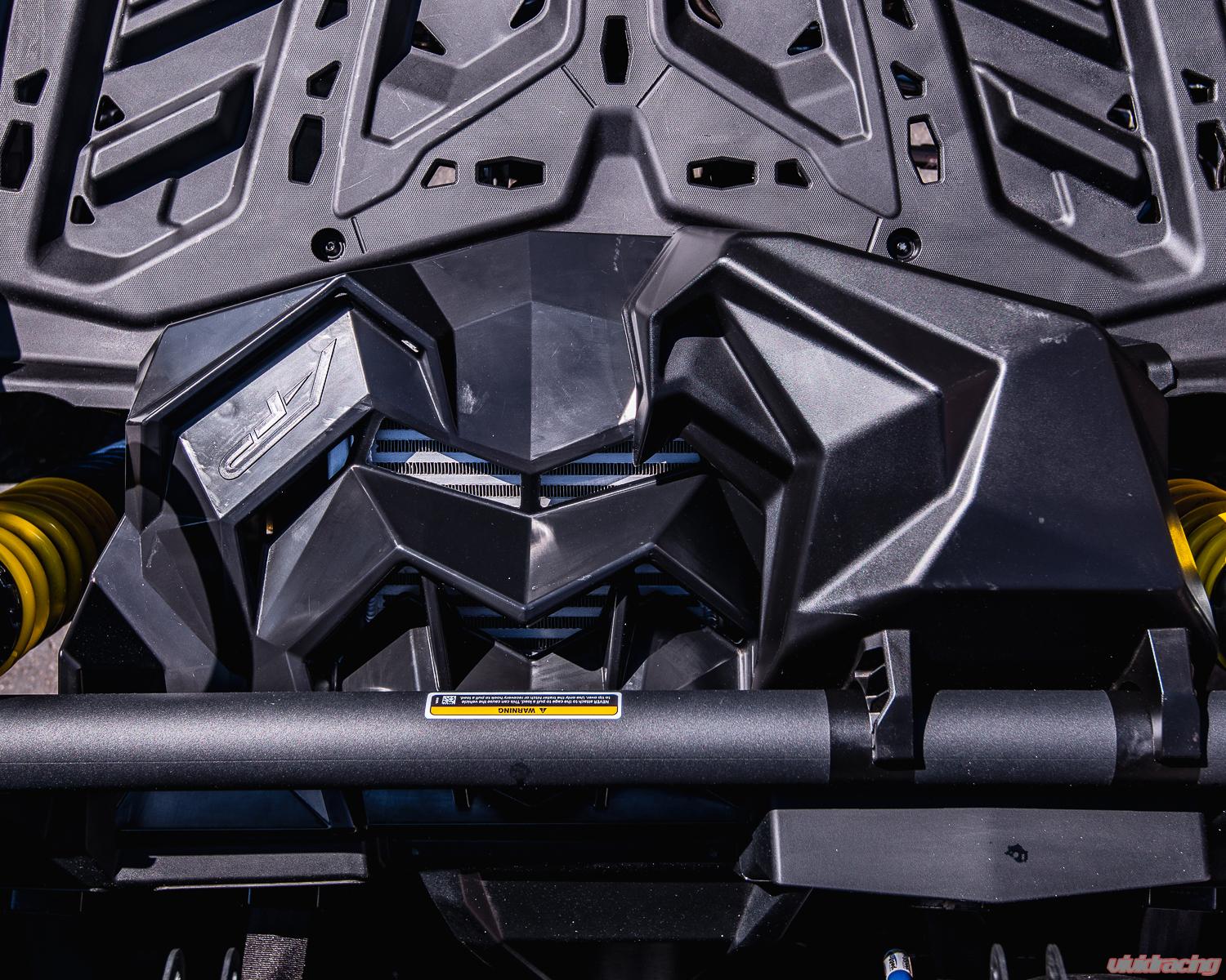 The Agency Power upgraded intercooler duct cover increases the center scoop from 1.5 inches to 4 inches tall and each side scoop from 1.5 inches to 2 inches with all keeping a 4 inch width. The intercooler duct cover increases the inlet air flow by over 40% from 32 cu in to 46 cu in. Made from a durable ABS plastic similar to the stock unit, it features a smooth black finish. The intercooler duct covers feature the AP logo and are designed to fit over the stock intercooler or the Agency Power intercooler. For those that want to customize further, the cover can be easily primed and painted by your local paint shop. Each kit comes with everything needed to snap into place. If you want to improve how your intercooler works at the track, on the trail, or in the dunes, then you must get the Agency Power Intercooler Duct Cover!