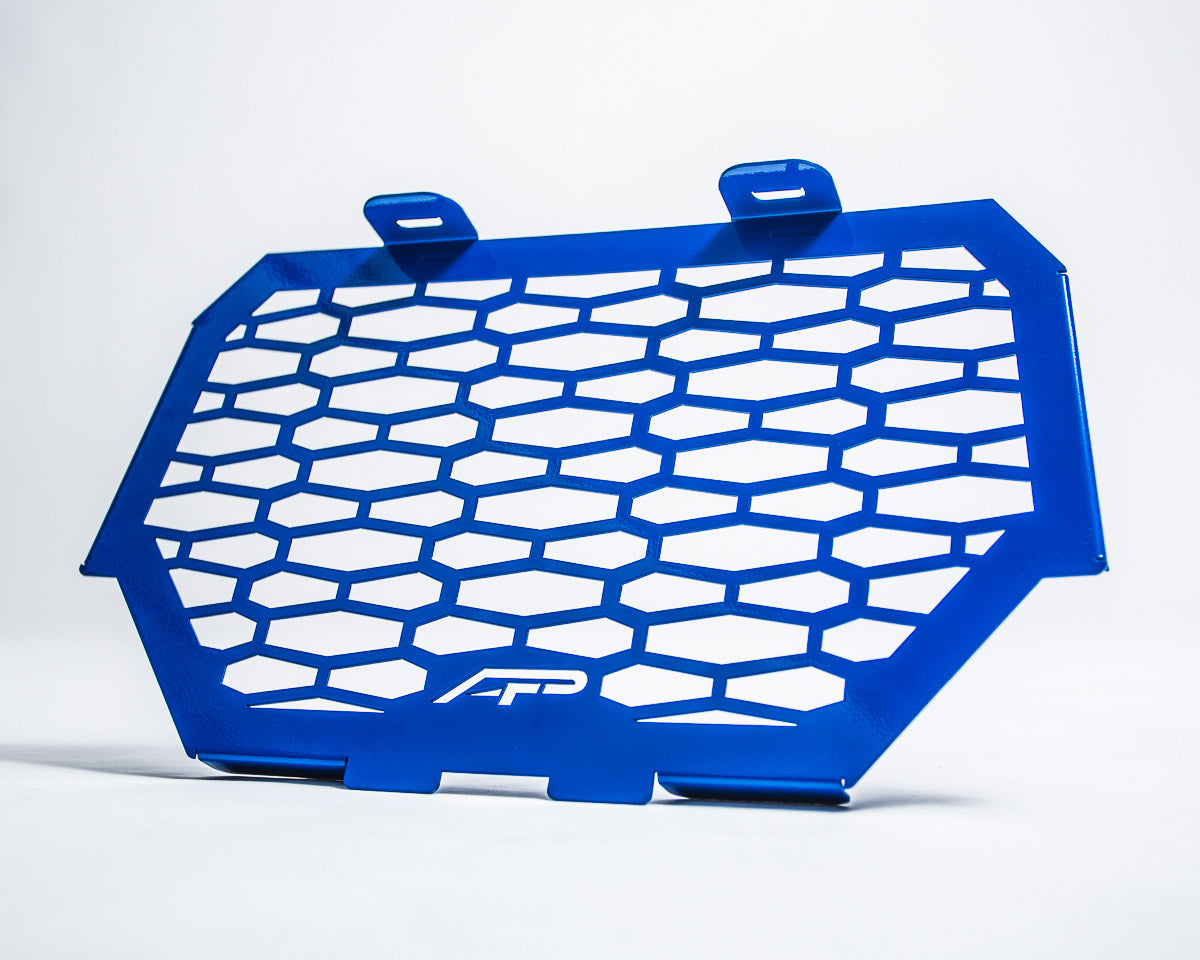The Agency Power Standard Grill is a simple addition to your Polaris RZR Turbo or 1000 to make the front end stand out. The replacement grill is constructed from stainless steel that has been precision water jetted. The stylish honey comb look is a perfect replacement for the plastic factory grill. The 1 piece grill is powder coated in a variety of colors and features the Agency Power AP logo in the bottom center. The grill easily fits into place of the stock unit with its tab design for a secure fit.
