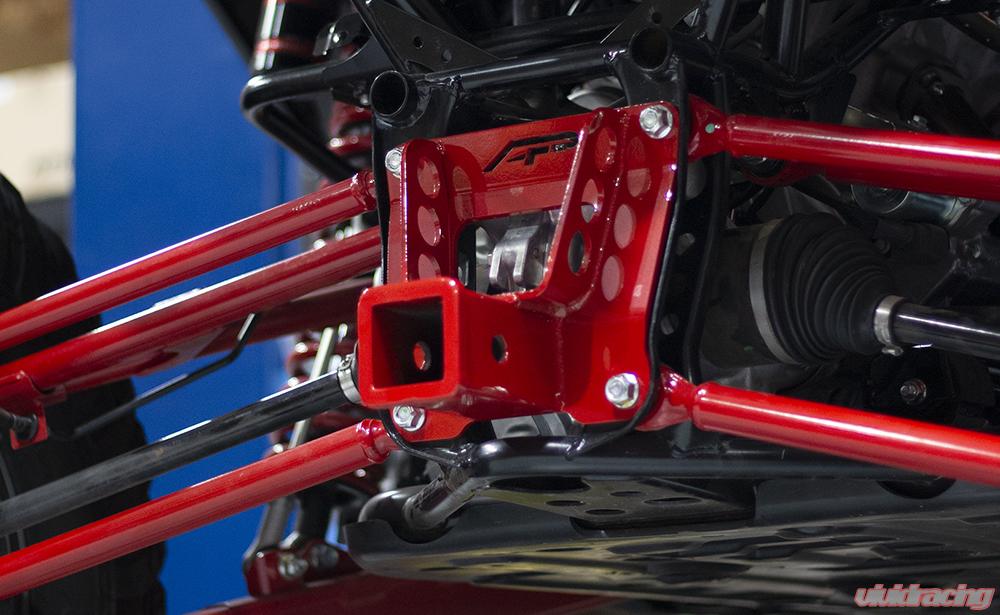 The Honda Talon can be used to race the track, jump through the dunes, or even cruise the trails. With such diversity of this UTV, some just need to tow! Since the Honda Talon uses a dual clutch transmission like a car, the potential of blowing belts from towing is not a concern. So for those that want the convenience of a tow hitch, Agency Power has this amazing new product. A tow hitch can be used to add a bike rack, connect a small trailer, or whatever purpose you want to use it for. But what makes the Agency Power tow hitch for the Honda Talon even better is the rigidity it adds to the factory mounting points of the rear radius rods. The thicker plate reinforces the chassis to prevent unnecessary flex that can occur under hard use. In addition, the tow hitch also features a gusset style U brace on either side of the tow hitch recepticle that can also be used for strapping down the Honda Talon or other uses.