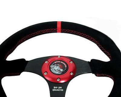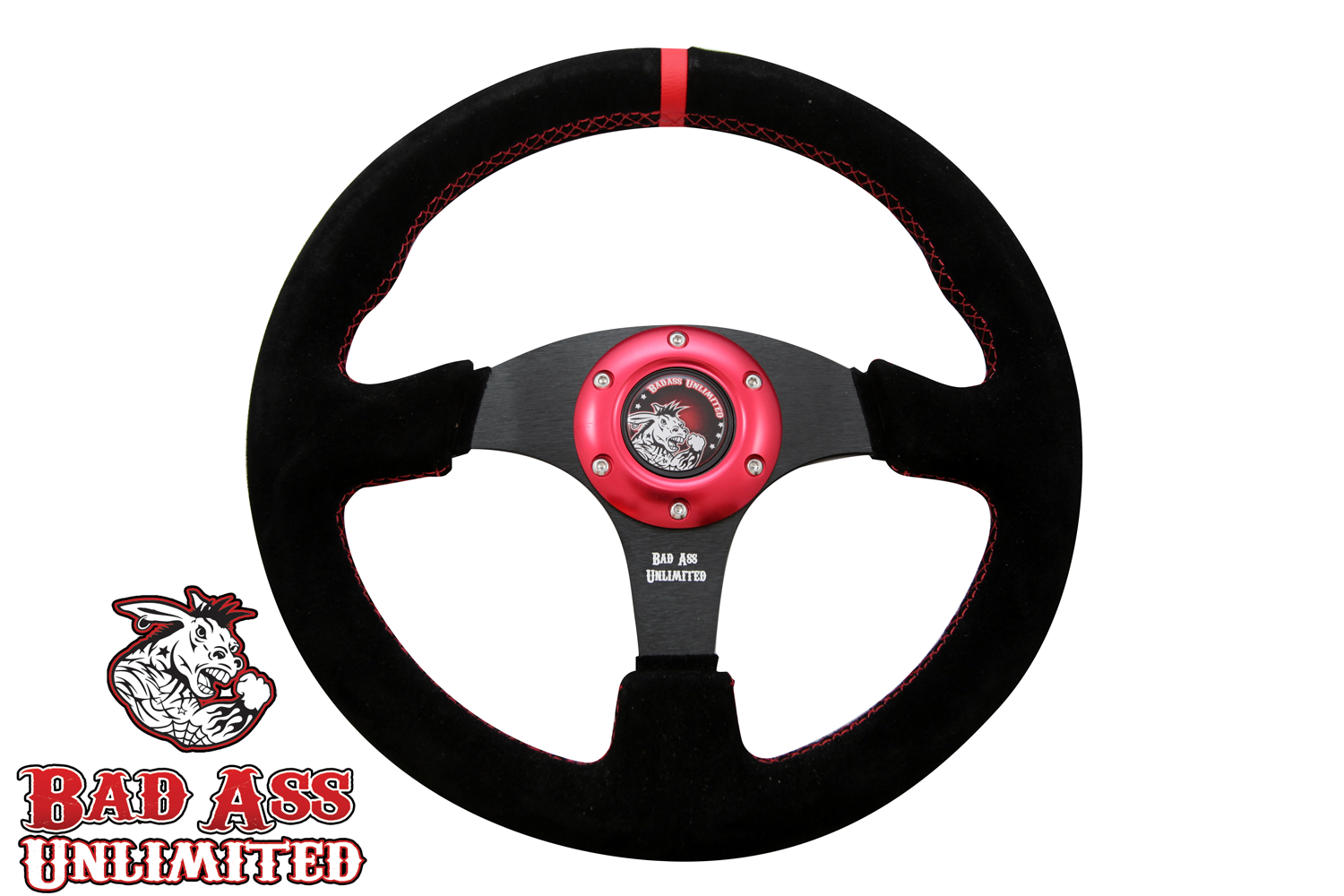 BAU-SW-SU-2415 -01Bad Ass Unlimited Black Suede Steering Wheel with Red Stitching