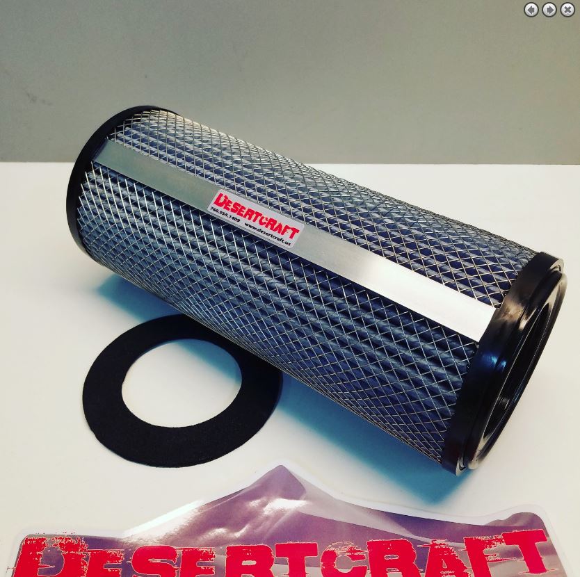 CA X3 filterThis filter will fit the Can Am X-3. Desertcraft has developed this filter for severe duty. The Desertcraft filter meets or exceeds in every category over the competition in this segment and it has the advantage of being serviceable. You will definitely save in the long run over one time use, throwaway filters. The specialty filter media is highly durable and has an efficiency rating that far exceeds the stock element for efficiency. The Desertcraft filter is a dry element that requires no special cleaner or oil to service. It is serviceable !!!! To service the filter you simply blow it out from the clean side with low pressure compressed air or vacuum (preferred) from the dirty side. The filter can be soaked in a soapy solution rinsed and air dried too.