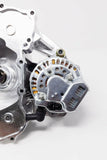 Our alternator kit adds an additional 75AMPS at operating speeds and roughly 30amps at idle combined with your factory stator output. Installation is all bolt on* and requires you to swap your existing stater over to our billet stator housing.