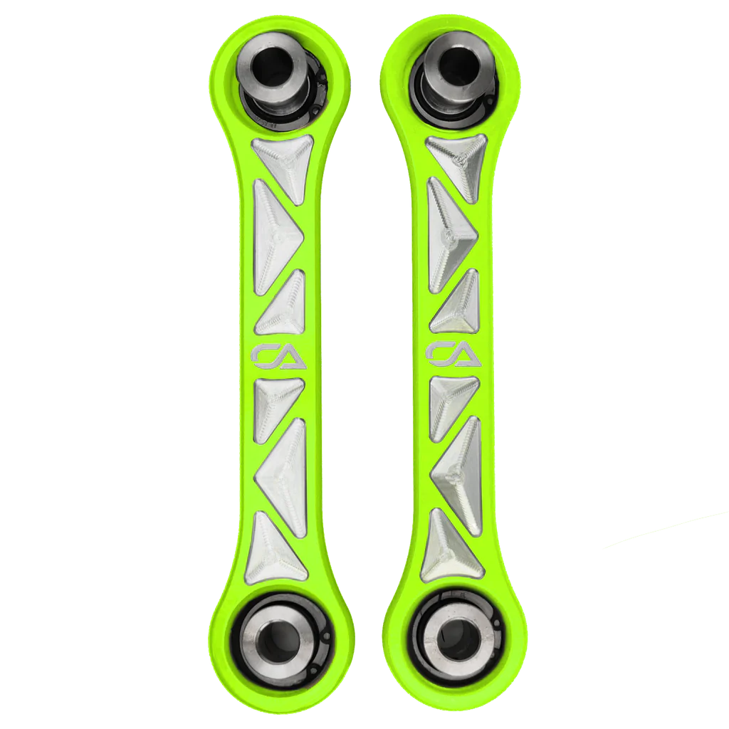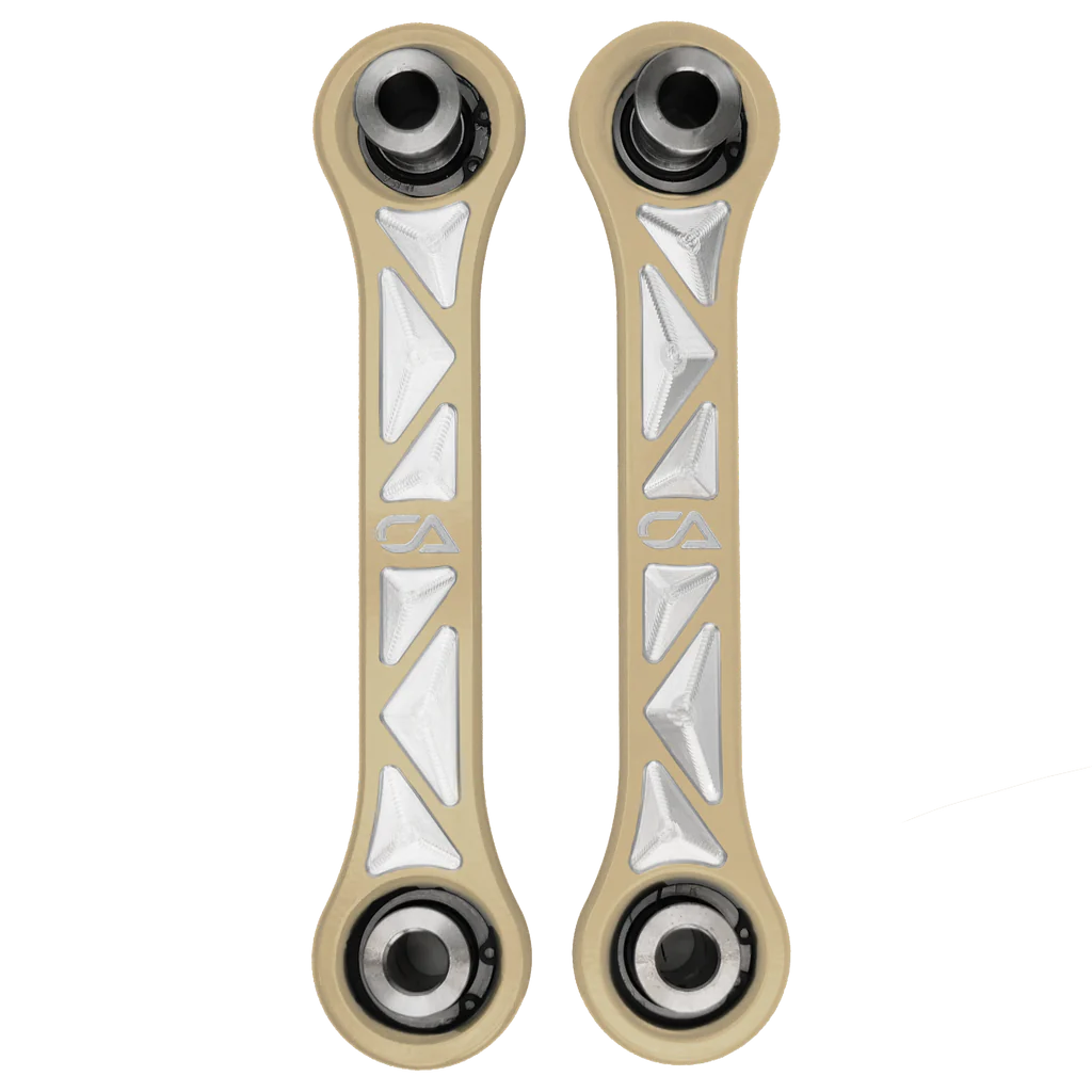 Our links are machined from solid 6061 Aluminum billet for superior strength while remaining lightweight, and come standard with FK brand COM10 bearings to ensure longevity and eliminate noise.