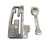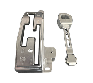 Due to popular request, we've applied our unique approach to developing a gated shifter for the x3 crowd.....We start by machining the gate assembly from a large block of 6061 T6 aluminum to provide great looks, and light weight. The top face fits perfectly in the stock console to show off the machined billet.....We also machine a replaceable Delrin insert that keeps the aluminum parts from rubbing together and insures silky smooth operation. The shifter makes it extremely easy and quick to shift between all gears and keeps you from accidentally shifting to park when not intended . We've also added our contoured knob mounted to a slightly longer handle to improve the overall feel of the transmission..... As with all of our products, the fit and finish of this piece is impeccable....The shifter is currently offered in a detailed machined finish, Call us for color options 801-367-1395