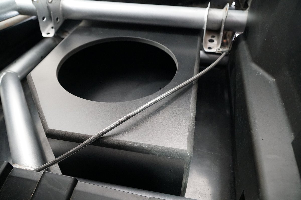 UTV Stereo has designed a 10" sub box compatible with the Can-Am X3's front driver side lower seat height position. This box will fit both two and four seat models and provides a solution when fitting aftermarket seats that could obstruct taller sub enclosures. Lowering seat position to the OEM bolt is possible with this sub box.