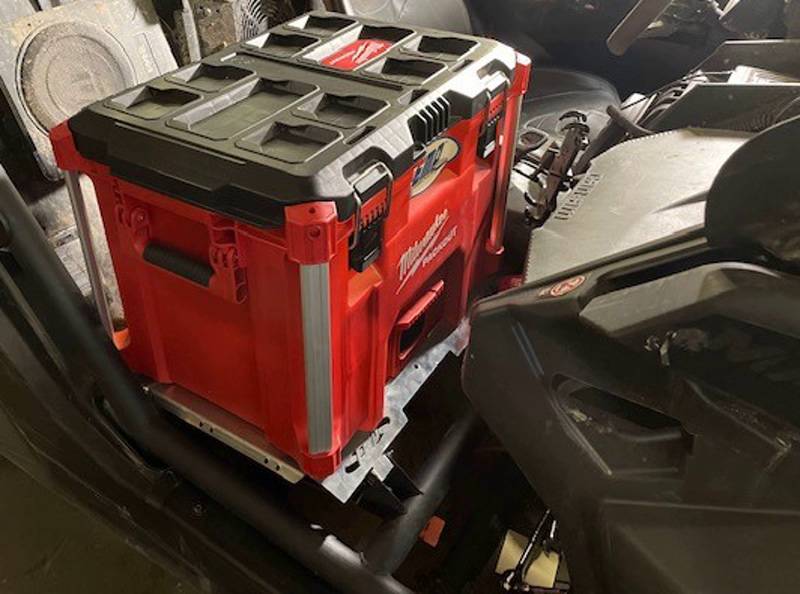 Securely, mount your Milwaukee PACKOUT Boxes and Coolers in place of the passenger seat. Great for single riders. It attaches with the supplied hardware and no drilling is required. These are laser cut and CNC Formed to insure a perfect consistent fit.