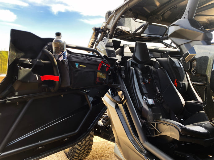 These rear door bags are compatible with Can Am X3 2017-2021 (excluding Trail models) The Chupacabra Offroad Rear Passenger and Driver Side Storage Bag set are a must-have for the X3 owners who are looking for an all-around solution for more storage. Resistant to fading, abrasion, and tears. The thick knee pad keeps even the tallest passengers' knees comfortable, no matter how rough the trail gets! This is a great storage bag for your X3 and keeps your phone, sunglasses, key, towel safe.