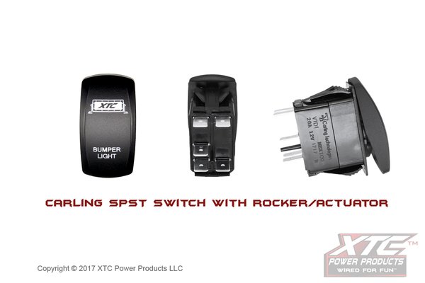 XTC™ Power Products Leads the way in UTV Wiring Solutions. We Use Carling Technologies V-Series: Contura Switches on our Switch Harnesses. The V-Series switches are well known for their cutting edge design, high quality, maximum performance and unmatched reliability. Certified to IP66/68, the V-Series Contura switches offer complete protection against dust, prolonged spray and submersion under pressure and are recognized to UL1500 - Ignition Protection for Marine Products. These switches are vibration, shock, thermo shock, moisture and salt spray resistant with operating temperature ranging from -40°C to 85°C. XTC Power Products are Made In the U.S.A. XTC™ Gets You Wired For Fun™!