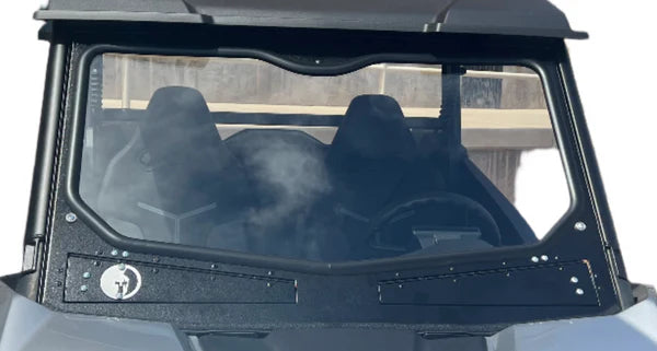 Every windshield we produce is made with Laminated Clear Safety Glass just like automobile glass. Each windshield has two independently working Vents which can be open or closed depending on the weather. The Aluminum Frames are Powder Coated in Textured Black which is more scratch resistant than standard smooth Powder Coats. Each windshield was templated by our team of fabricators using the best technology and equipment to get the best fit possible.