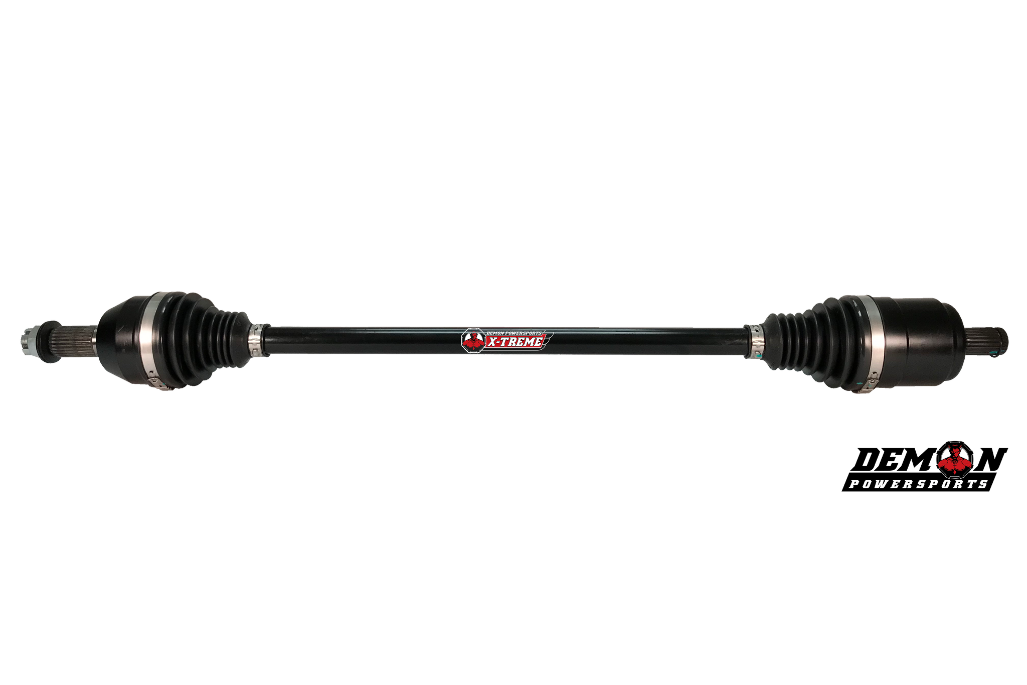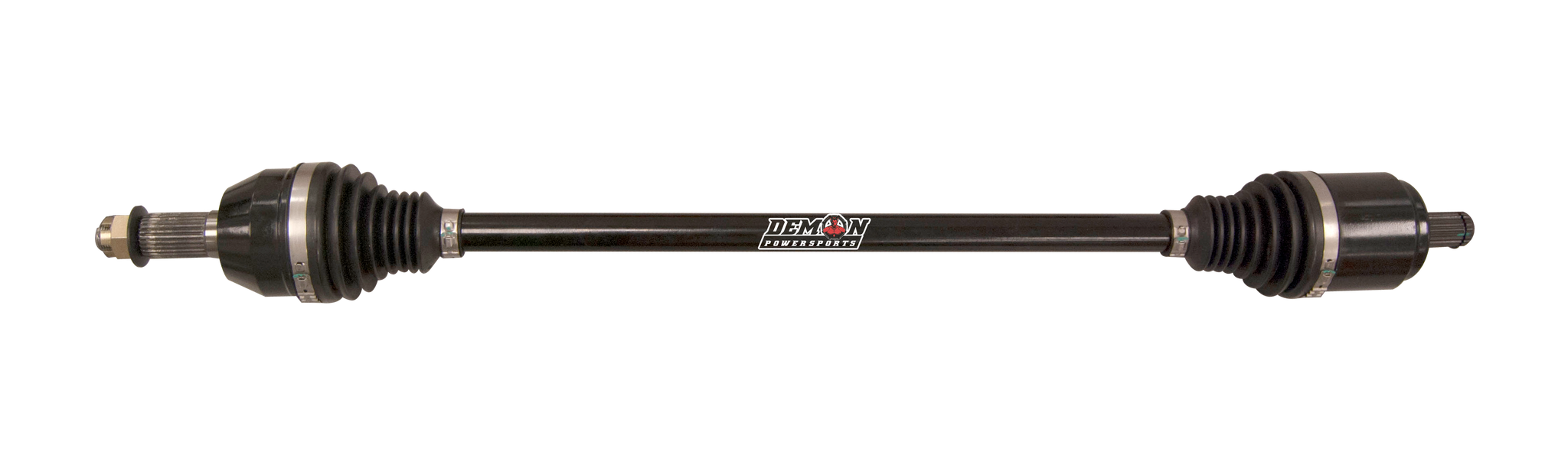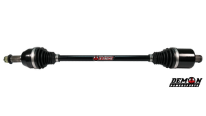 X-Treme Heavy Duty Axle by Demon Powersports®. This top-grade product is expertly made in compliance with stringent industry standards to offer a fusion of a well-balanced design and high level of craftsmanship. Manufactured from industry-leading materials using up-to-date equipment, it ensures everlasting reliability and enduring value. This product is distinguished by total quality assurance, unsurpassed by anybody else. Complete Axle 4340 chromoly steel, larger CV Joints and center shaft diameters, re-engineered cage design to enhance durability, thermoplastic polyester elastomer CV Boots are highly resistant to tearing