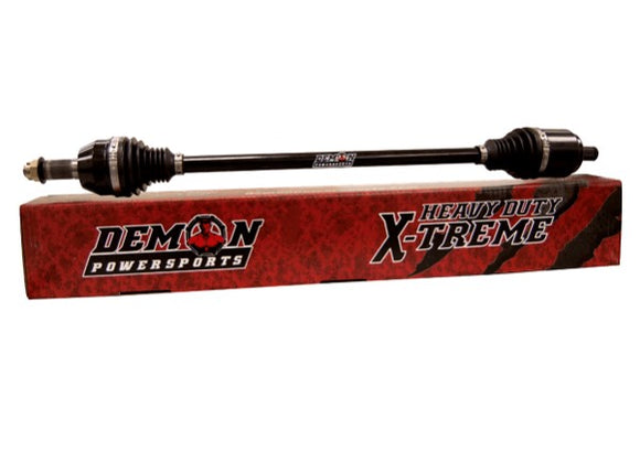 Rear Right X-Treme Heavy Duty Axle by Demon Powersports®. This top-grade product is expertly made in compliance with stringent industry standards to offer a fusion of a well-balanced design and high level of craftsmanship. Manufactured from industry-leading materials using up-to-date equipment, it ensures everlasting reliability and enduring value. This product is distinguished by total quality assurance, unsurpassed by anybody else. Complete Axle 4340 chromoly steel, larger CV Joints and center shaft diameters, re-engineered cage design to enhance durability, thermoplastic polyester elastomer CV Boots are highly resistant to tearing