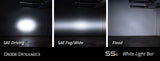 White or Amber. All Stage Series light bars are available in a cool white or amber color. The white is a 6000K color temperature, which is a true white output, without any blue. The amber is a brilliant deep yellow color, perfect for hazards or high contrast in poor weather. The SS12 Stage Series 12" Amber Light Bar can be found here.