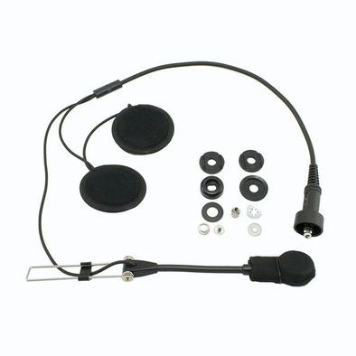 This helmet wiring kit was designed by PCI for open face helmets. Standard helmet wiring kits don't have a far enough reach for the microphone to reach your lips. This install difficulty level is medium, so it can be installed at home, but if you aren't comfortable with all the parts and pieces for the boom that mounts outside the helmet, send it in to the pros and we will custom wire your helmet for you.