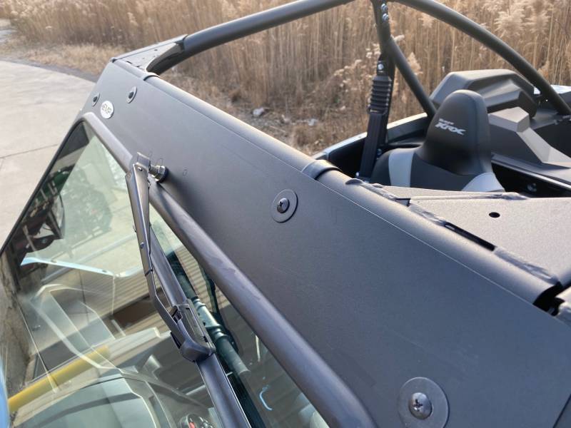 This is a great windshield for your Kawasaki KRX 1000. The glass is laminated safety glass, the same as many automotive windshields. The powder coated metal frame is made from 14 gauge steel. The removable vents let is just enough airflow to help prevent some vacuum while keeping the wind off of you. The DOT rating is etched into the glass. The 16" hand operated driver's side wiper comes in handy on rainy days.