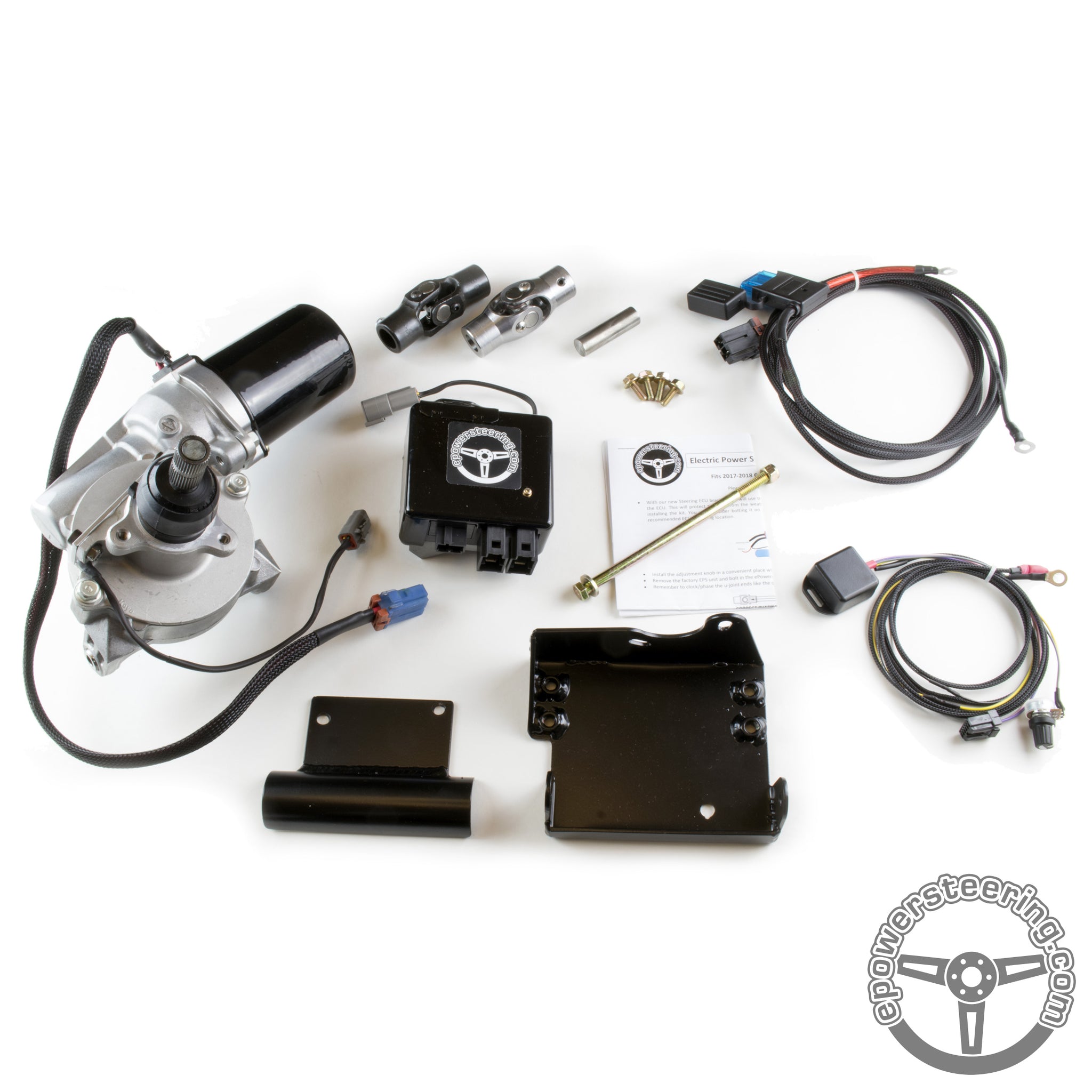 KIT-13Complete electric power steering unit for 2017-21 CanAm Maverick X3 (some function lost on Smart Lok Units). Includes rebuilt EPS unit, steering ECU, EPS controller and harness, 60 amp fuse, output and input u-joint, powder coated brackets, misc bolts and washers, and wiring instructions.