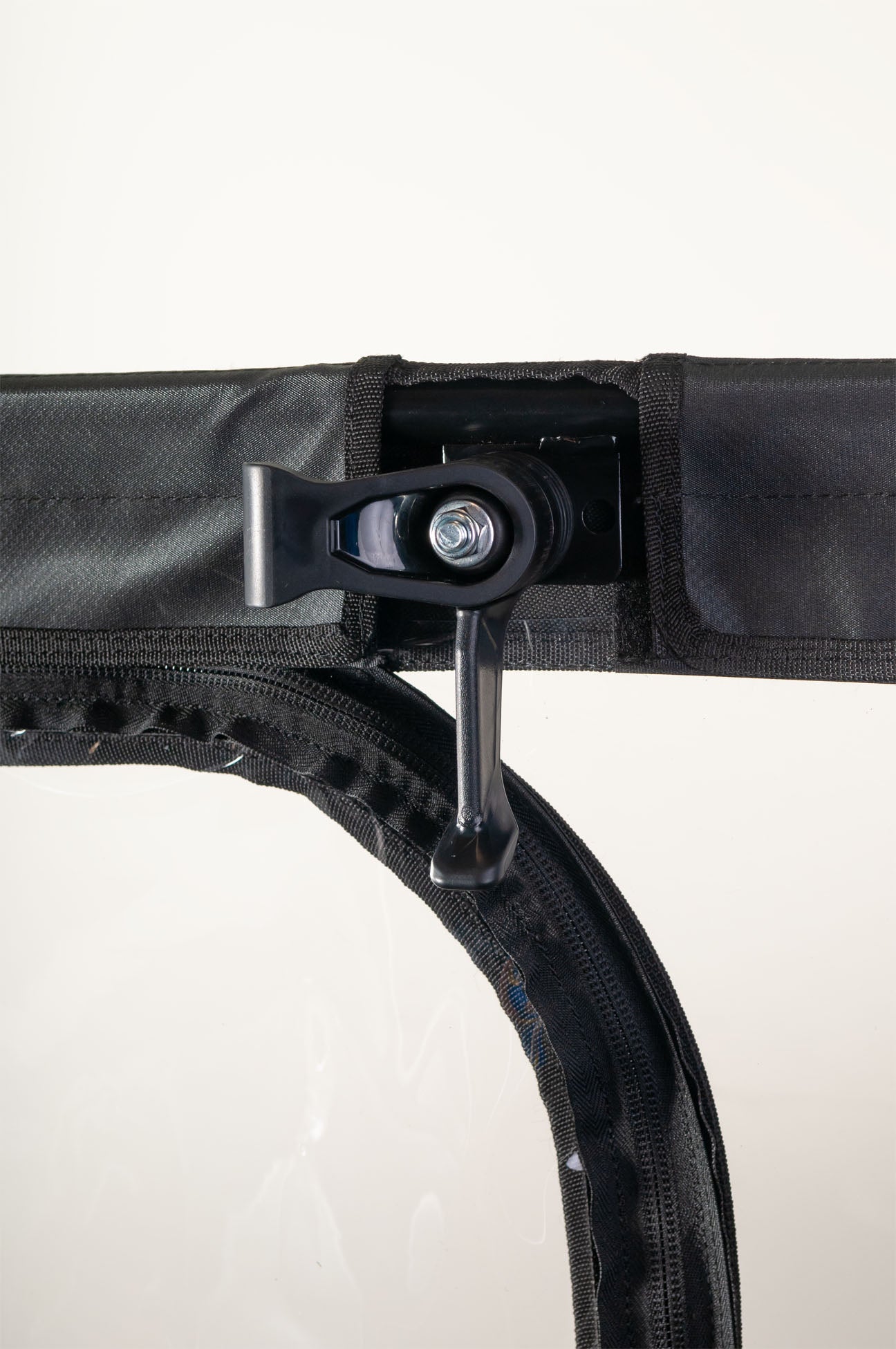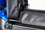 The Seizmik Framed 1/2 (Upper) Door Kit for the Kawasaki Mule Pro mounts to the Kawasaki factory lower door and utilizes an upper latching lever to create a tight seal against the vehicle’s roll cage.Tubular steel frames are covered with durable and removable UV resistant PVC coated heavyweight nylon fabric.Works with both Kawasaki Mule Pro FX and FXT models (does not fit FXR models).
