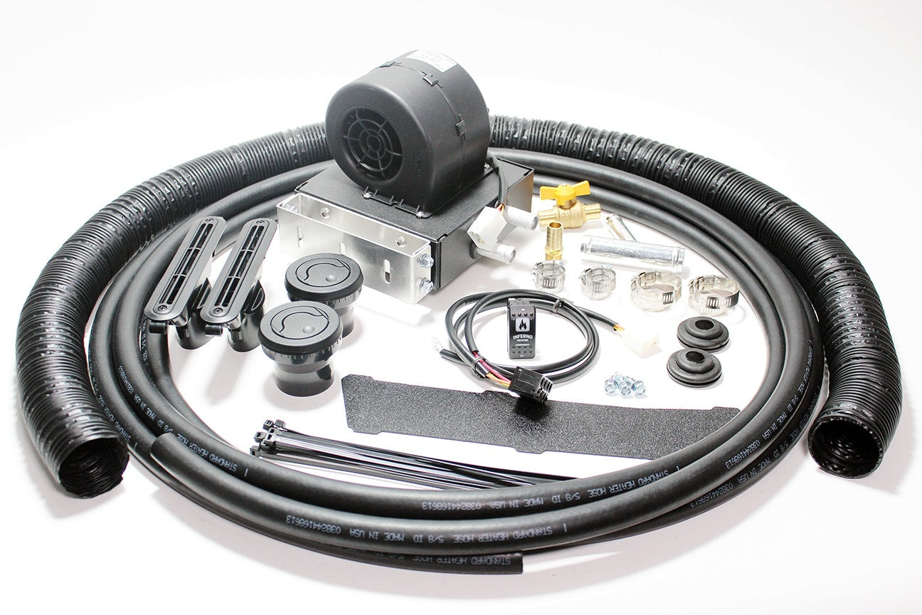 - Includes all necessary components: heater hose, hose splicers, hose clamps, mounting brackets, defrost and floor louvers, ductwork & wiring.