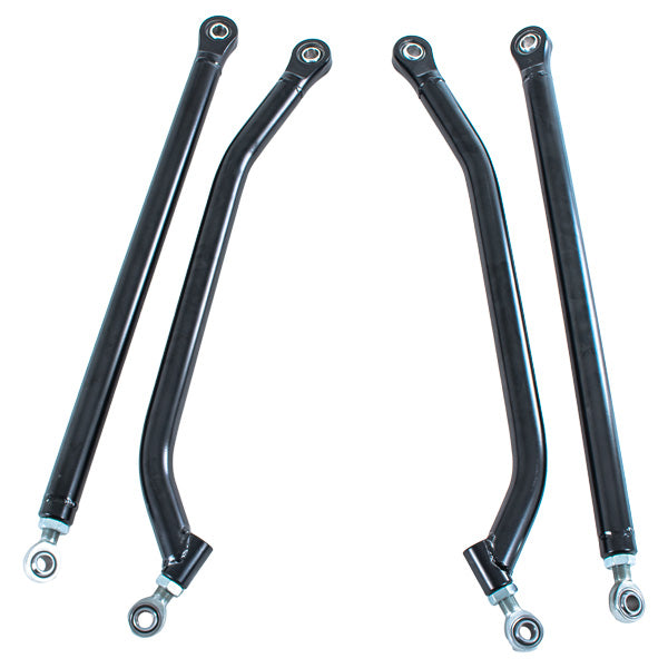 Geared to extreme riders, this tough suspension kit features heavy-duty, adjustable control arms built from 1-1/2”, .120” wall DOM tubing. Heat-treated collars with massive one-inch threads offer over three degrees of camber adjustment in each direction. Engineered to have multiple shock absorber locations to allow the shocks to have different ride heights. This allows for an additional lift to the front or rear depending on how you ride and what accessories are installed.