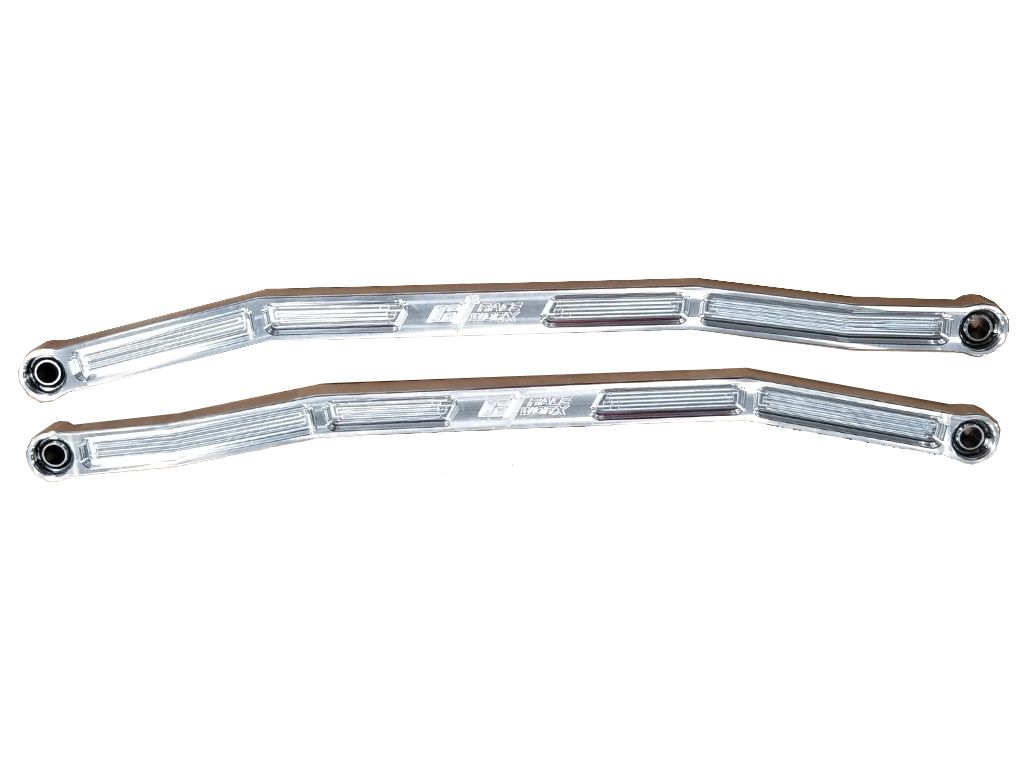 These high clearance lower rods are built from 7075-T6 aluminum and feature over an inch of ground clearance. This is aircraft grade aluminum and is the strongest aluminum option for our sport. The ends house FK uniballs, the same series joints that the trophy trucks are running, there is nothing better.  Gain over an inch of ground clearance and incredible strength.