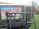 Made from 16 gauge steel and powder coated gloss black to match the cage. The sides are folded over twice creating a 1/8" angle around the outside making it very it very durable. It mounts with EMP Quick Connect Clamps using (6) bolts, so you can easily remove the top in the future. The clamps will remain on the cage so you can easily mount it again. Will work with most windshields, including the EMP Full Windshield #10575.