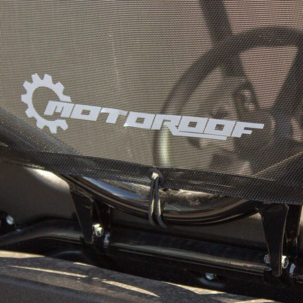 MotoRoof Wind Jammer is a mesh dust barrier designed to quickly attach to your Honda Pioneer 1000 & 1000-5. The Windjammer is an excellent quick attach barrier that helps to greatly reduces dust rolling back into the cab of your vehicle. You also gain an additional 80 percent shade factor for the rear of the vehicle.MotoRoof Windjammer. They are designed to work with and without the factory Honda plastic roof. The Rear Window Panel can be rolled up and secured to the roll cage with bungees if the panel needs to be moved out of the way.