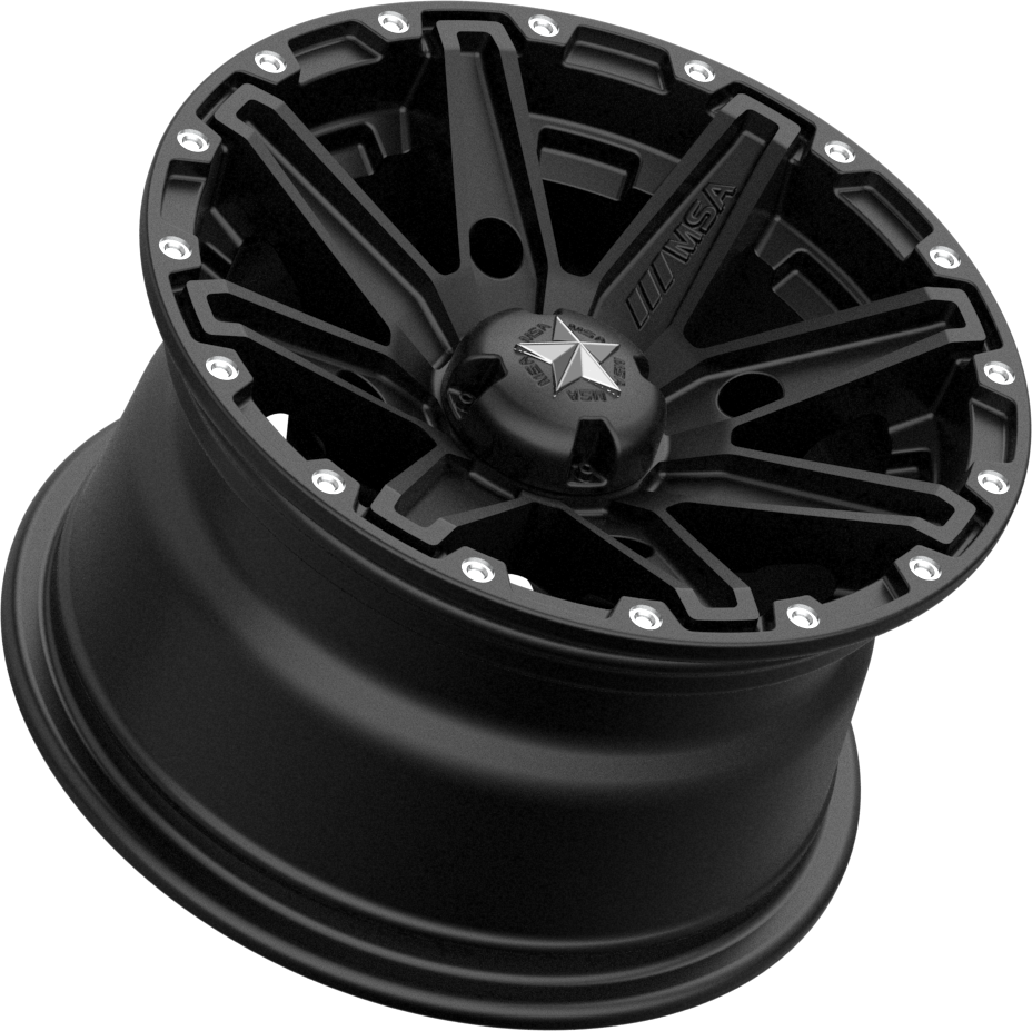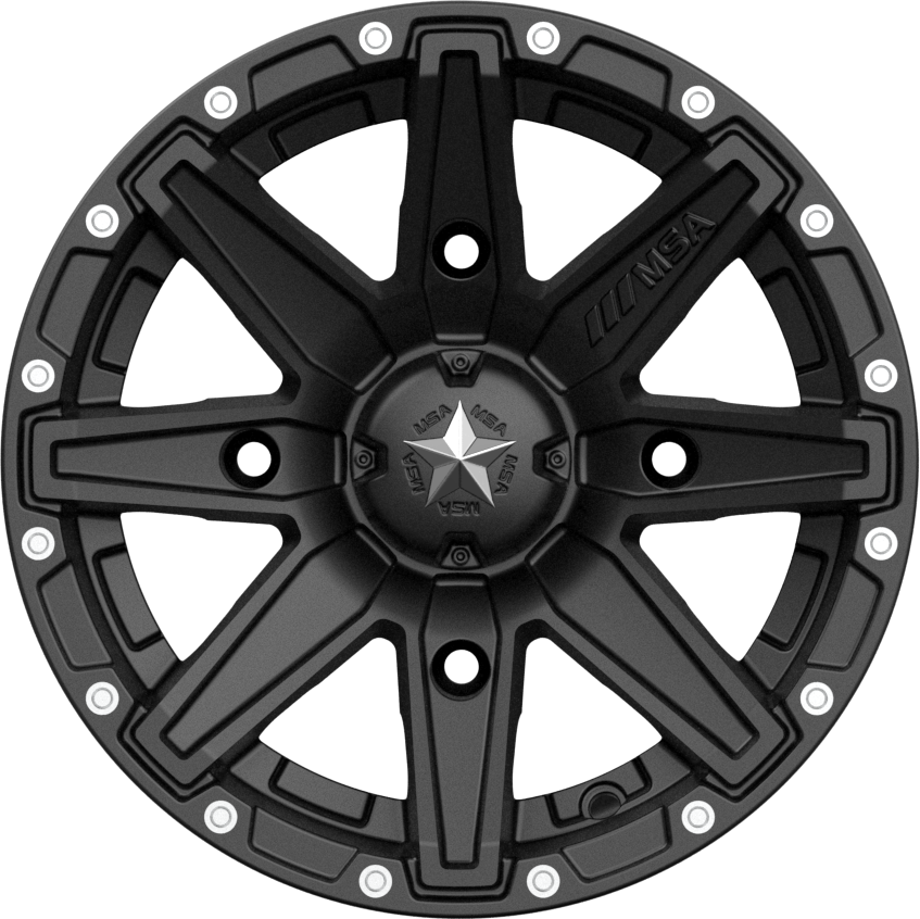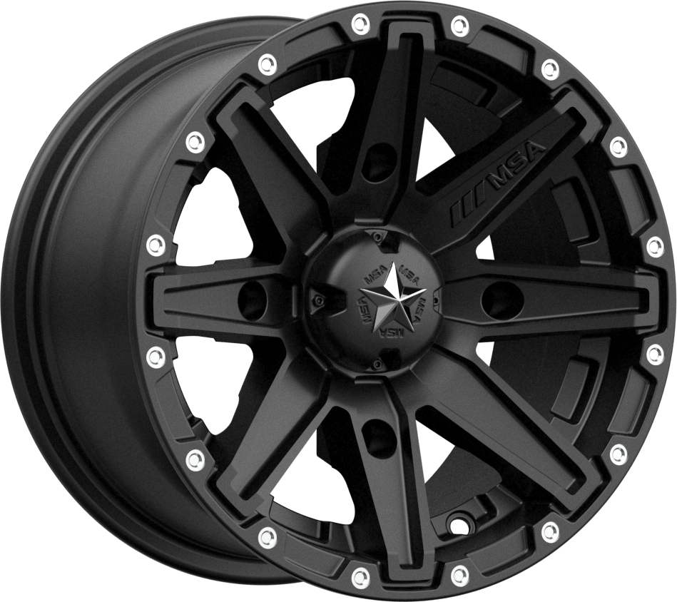 The M33 Clutch breaks the off-road styling mold with deep, three dimensional spoke design and lightweight engineering to truly enhance your ride performance. Finished in satin black automotive grade paint, the M33 Clutch has subtle, milled accents along the lip for just the right amount of raw aluminum highlights. Available in multiple sizes, with fitments for any UTV or ATV. Interchangeable center cap and star allow you to swap out accessories for custom colors and optional finishes. Backed by full lifetime structural warranty, the M33 Clutch is your best ally on any terrain, anywhere in the world. This is next level off-road performance.