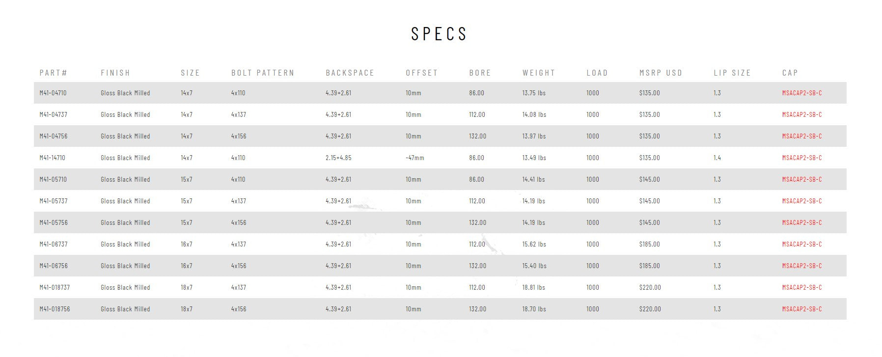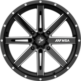 Every MSA Wheels style is designed, engineered and field tested in the Beautiful Rocky Mountains of Colorado, flats of California and deep mud holes of Texas, to ensure top performance and the highest caliber of safety. Each wheel is hand inspected and finished with the finest automotive grade paints, inserts, bolt and materials. MSA Wheels are manufactured by Wheel Pros Powersports Division, using lightweight virgin aluminum used in low pressure casting which means your wheels have a beautiful, low porosity and high luster quality. MSA has fitments for nearly all manufacturers and specific models (including deep dish or standard IRS fitments). The majority of MSA caps are interchangeable which allows you the ability to customize your wheels ever further with a variety of colors and cap designs.
