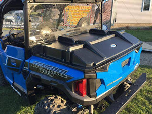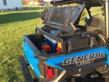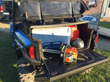 Keep your cargo clean and dry with this stylish plastic bed cover. The rear section is hinged and folds forward on the front to allow easy access with and without the tailgate open. It attaches to your stock bed with rubber expansion plugs that go into the holes on the top of the stock bed. Easy Tool- Less removal makes taking it on an off very easy and fast. The front section is about 4” higher than the stock bed allowing clearance for a full size cooler like the one pictured with space left over for other cargo too.