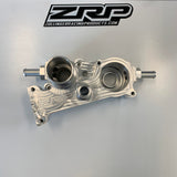 The Pro-R has proven itself to be one of the hottest new platforms for tuning. The stock cast housing with press fit hose barbs is prone to failures and leaks related to multiple heat cycles allowing these fittings to work themselves loose. The ZRP Thermostat housing features all O-ring boss AN style fittings that thread it thus preventing future failures this construction allows for customized applications with various fitting combinations to suit your needs. Available as a factory replacement with all required fittings or as a bare housing to allow for custom applications.