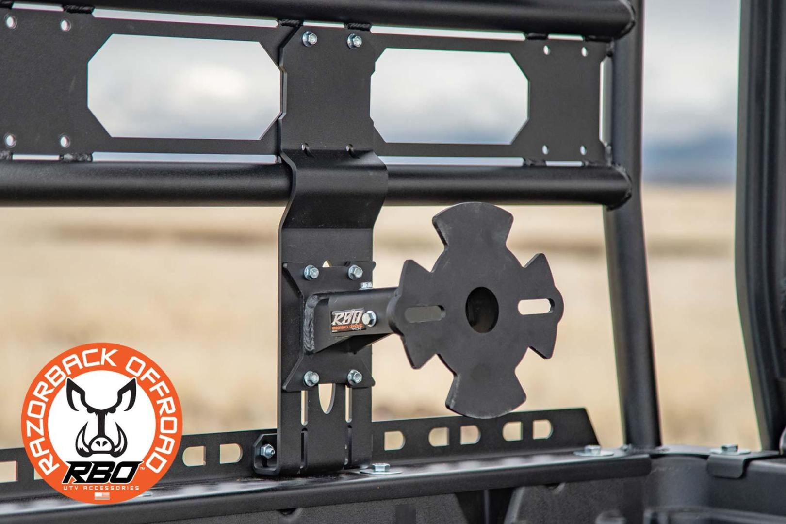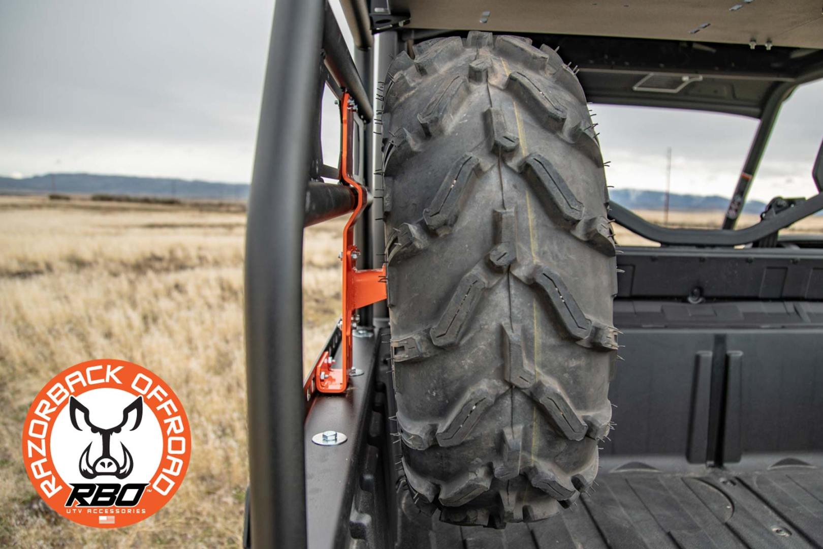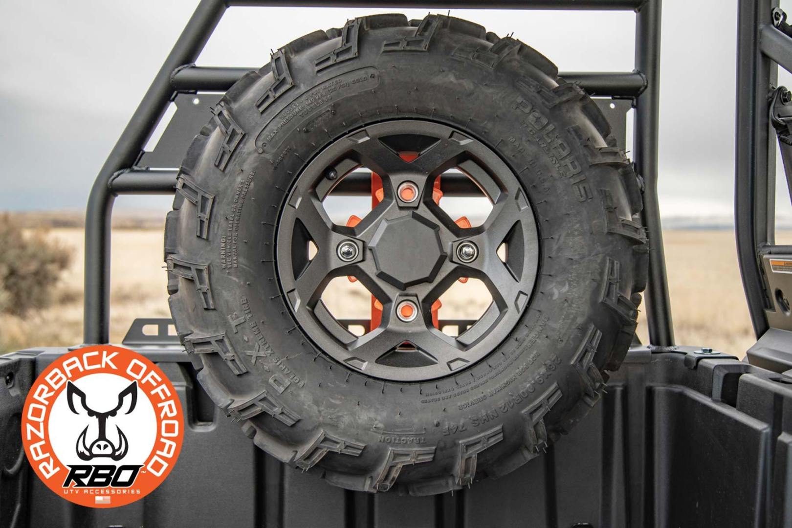 The Razorback Off-Road Can-Am® Defender Spare Tire Mount was designed to fit exclusively on our RBO Can-Am Defender Utility Cargo Rack (RBO5230). It can be installed quickly with included hardware without modifying your utility rack. This Spare Tire Mount features our “It Fits”™ adjustable mount so you can adjust the mount to fit all widths of tires. The RBO Can-Am® Spare Tire Mount is also adjustable up and down so it will also fit all heights of tires 31″ and shorter. These adjustable features will accommodate all popular sizes of spare tires and allow the tire to rest on the bed of the Can-Am® Defender making it easy to remove your spare. The RBO Defender Spare Tire Mount is made from fabricated steel, comes with both 10mm and 12mm wheel lugs and all necessary hardware to bolt directly to the RBO Can-Am® Defender Utility Cargo Rack (No drilling or modification required)