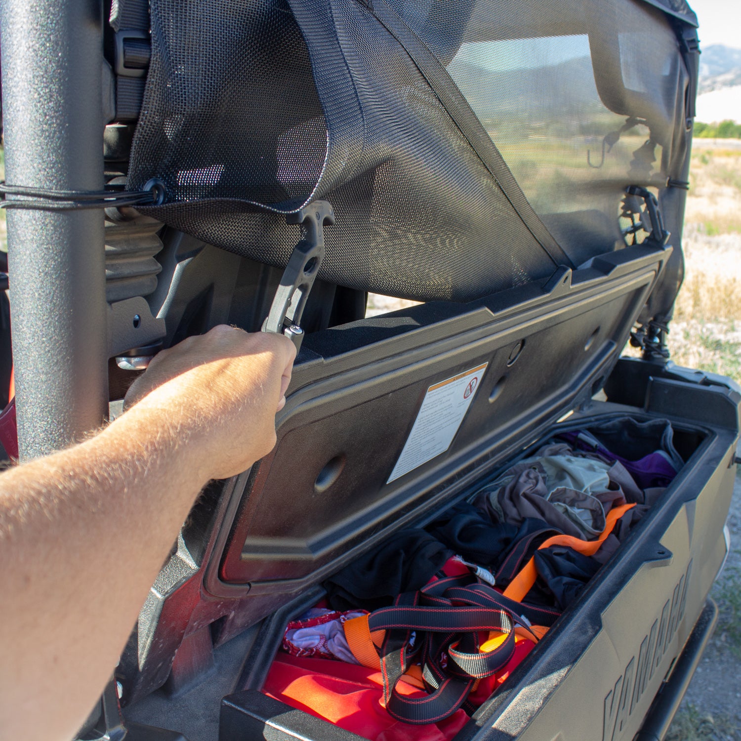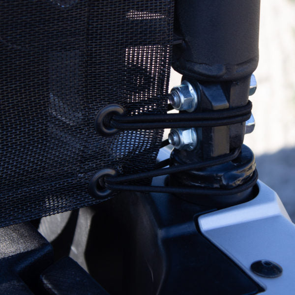 Bungees are included with all our roofs and window panels. Our bungee system quickly aligns the mesh panels to your vehicle. Bungees do wear over time and typically need to be replaced after a few years. Fortunately, we stock bungee replacement sets and are inexpensive to replace.