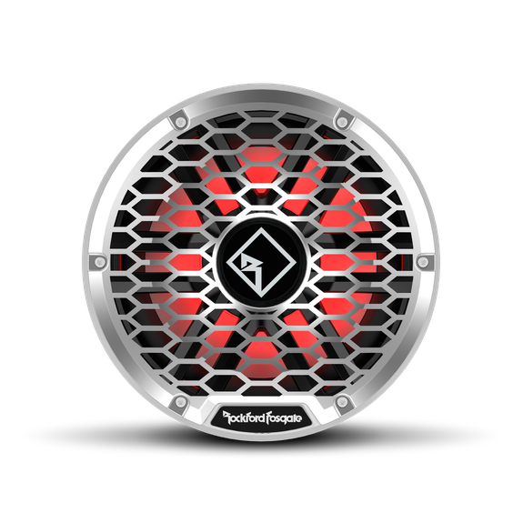 The M2D4-10I Color Optix™ 10” DVC 2-Ohm infinite baffle subwoofers deliver loud, clear, accurate bass, and light the way for your journey! M2 provides a customized look by using either the stainless-steel grille or the white “sport” grille insert. The subwoofers connect with the Rockford Fosgate Color Optix™ Controller and RF Connect App, allowing you to customize your own color patterns. The Element Ready™ design and IPX6 certification makes them truly purpose-built for marine or motorsport applications where protection from damaging UV rays and water spray is essential. This subwoofer is optimized for Infinite Baffle installations, where an enclosure is not required.