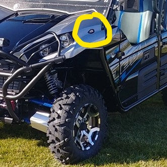 Ryco street legal kits have a turn signal with an integrated horn button and emergency flashers. The Ryco kit interfaces with the gauge pod in most UTVs to show when the turn signal is actuated. On the Polaris digital dash a green light flashes on each side of the dash to indicate when the signal is actuated for left or right. The analog dash has one green (<>) light in the middle that flashes (see retrofit note below for older kits).Three LED lights are used for each left and right turn front turn signal with a steering column mounted signal stat that also includes the horn button. The factory rear tail lights are used for the left and right turn signals. Illuminated license plate holder with night time running lights are integrated into the system to meet state regulations for highway vehicles. Wiring harness and detailed instructions are included with each kit. Satisfaction guaranteed.