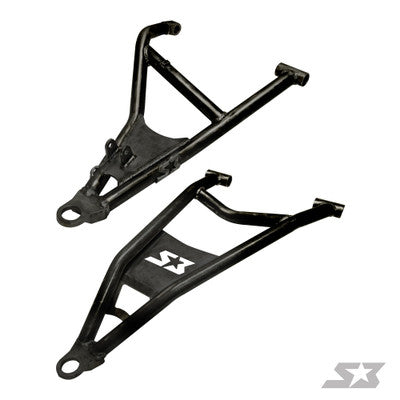 S3 Power Sports manufactures these +2" Forward High Clearance A-Arms for the Polaris RZR XP 1000 from DOM tubing and offers a LIFE TIME WARRANTY! These A-Arms allow you to run factory axels with no axle binding, retain factory ride and turning radius, while easily making room for a 30" tire with no rubbing. The S3 Power Sports +2" Forward A-Arms are arched for more ground clearance and bolt into the factory locations with no cutting or welding! Uses O.E.M. bushings and ball joints.