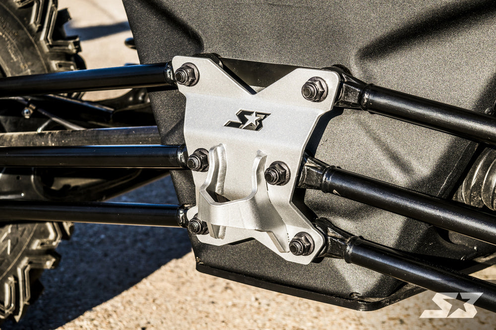 S3 Power Sports Can-Am Maverick X3 Pull Plate! Strengthen your rear chassis and add a tow point with the S3 Power Sports Can-Am Maverick X3 Rear Pull Plate. The thick plate construction is engineered to reduce stress on the rear tow bar mounting bolts and improve the strength of the rear chassis. The fully bolt on design is a direct replacement for the OEM rear plate but offers increased strength, durability and our Lifetime Structural Warranty.