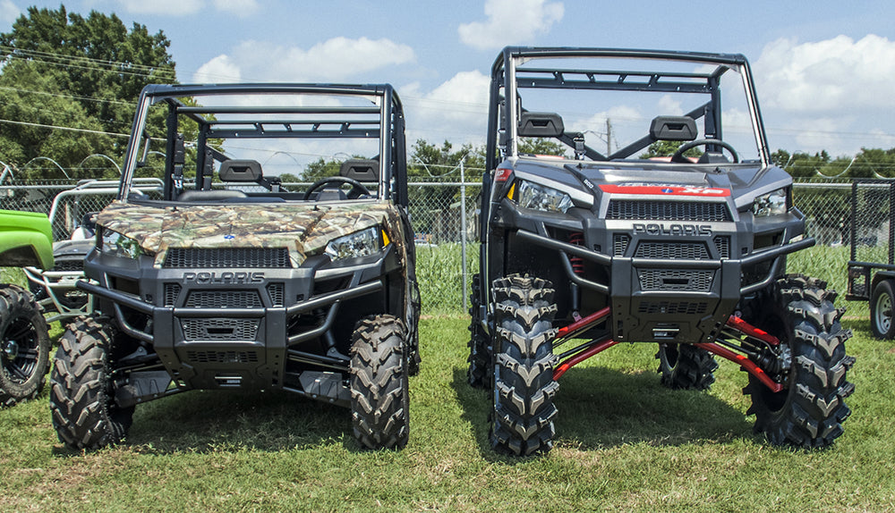 S3 Power Sports Polaris Ranger 5" Lift Kit! Polaris Ranger 5" lift features 2" forward a-arms for the front with high clearance arched lower arms and arched lower a-arms in the rear. With this combination and the built in 5" lift, you will have no problems clearing a 30" tall tire with no rubbing. The kit is designed to use the factory axles with no axle binding and retain the ride and drive of a factory Polaris Ranger! Uses OEM Ball Joints and Bushings.