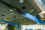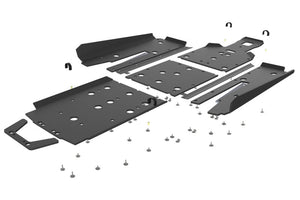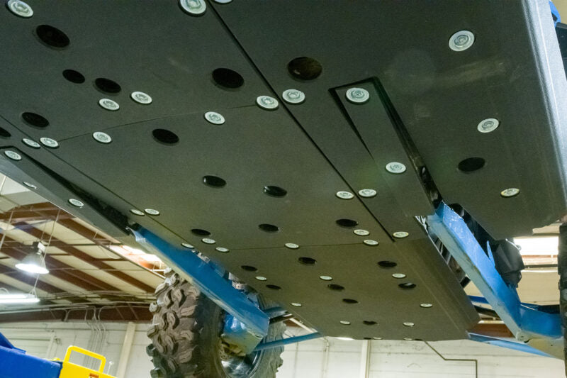 Easy to handle sections piece together to cover the entire undercarriage of the vehicle, including the front and rear differentials. The corrosion resistant mounting hardware is recessed below the plate’s surface, protecting the fasteners from damage.
