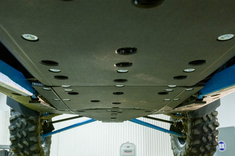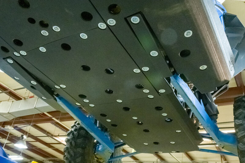 While your RZR Turbo S came equipped with what the manufacturer might refer to as a “skid plate”, it’s really nothing more than a very thin piece of plastic that offers minimum protection for your fuel tank, battery, parts of your transmission, and (if you’re lucky) a small portion of the front and rear differentials.