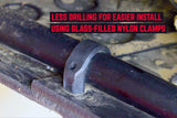 LESS DRILLING—For shorter & easier installation with the use of Glass Filled Nylon Frame Clamps with Brass Inserts and Existing OEM Mounting Points where possible